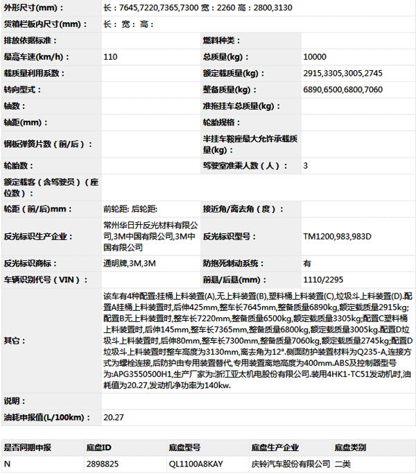 公告型號 CLY5100ZYSQLE5