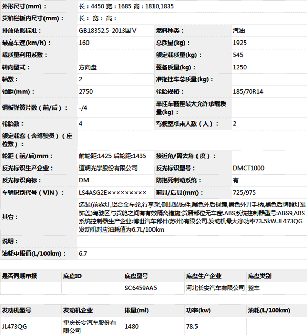 河北長(zhǎng)安SC5028XXYA5廂式運(yùn)輸車
