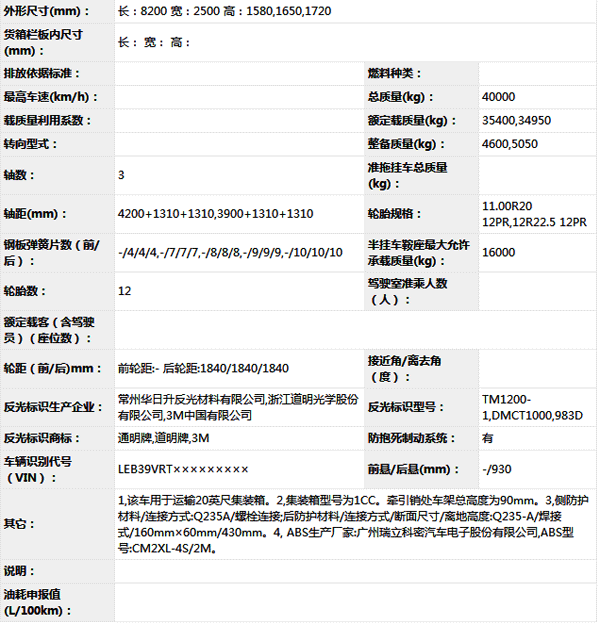 柳州乘龍福獅牌LFS9406TJZ集裝箱運(yùn)輸半掛車
