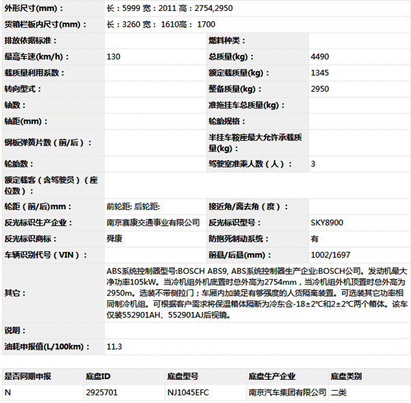 南京汽車依維柯牌NJ5045XLCF2E冷藏車