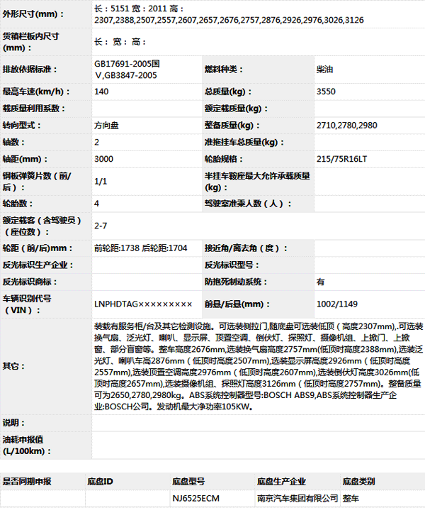 公告型號(hào) NJ5049XJC5E
