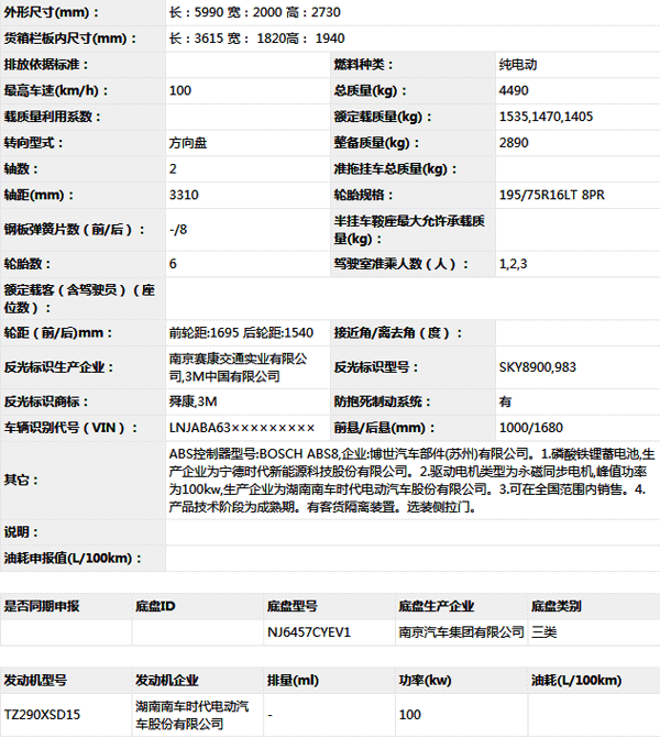 公告型號(hào) NJ5047XXYCEV3