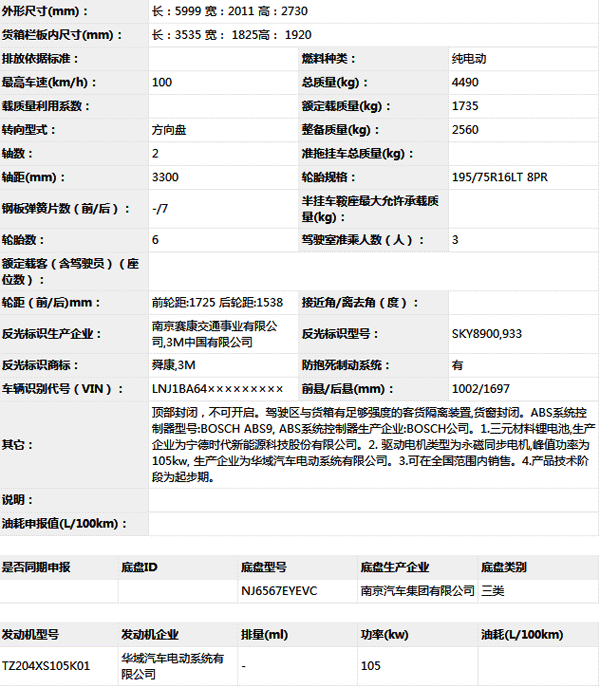 公告型號 NJ5047XXYEEV