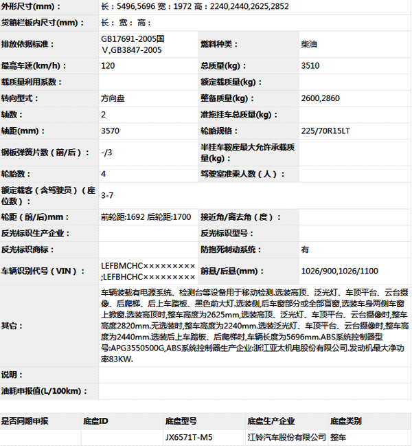 公告型號 NJ5040XJC53