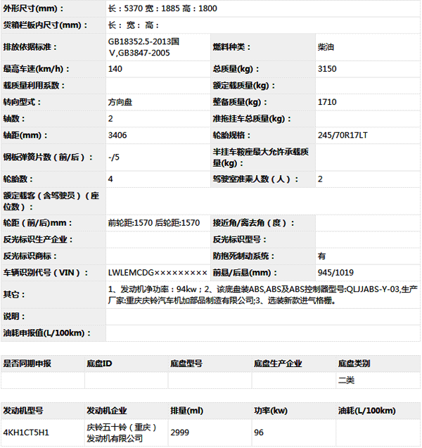 慶鈴汽車QL1030CDCAY多用途貨車底盤
