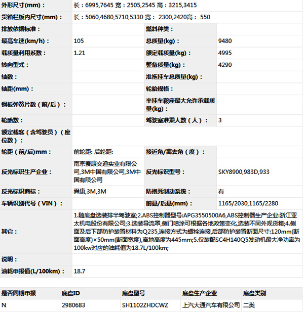 公告型號(hào) SH5102CCYZHDCWZ