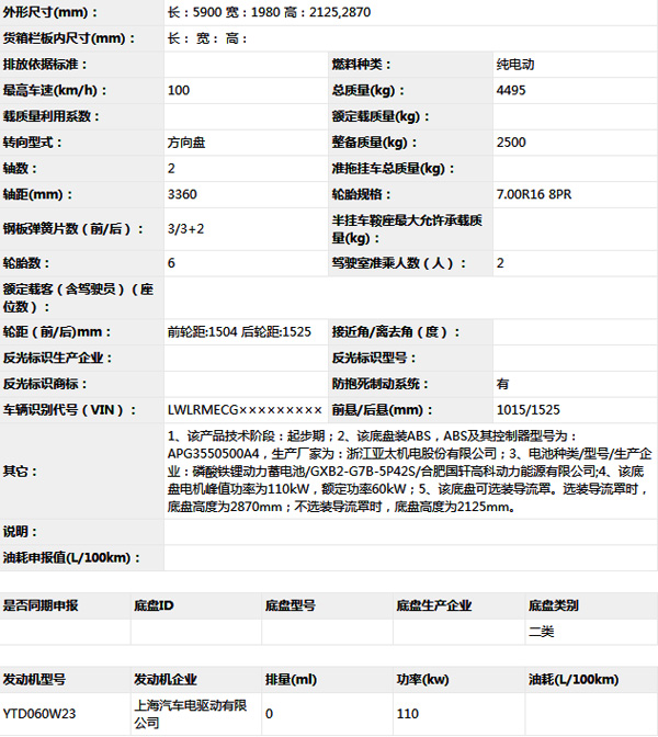 重慶慶鈴QL1041BEVECCA1Y純電動(dòng)載貨汽車底盤