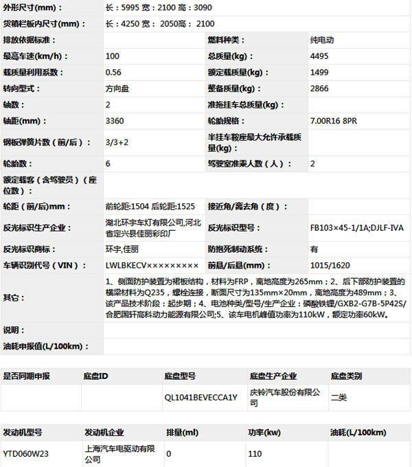 公告型號(hào) QL5041XXYBEVECCA1