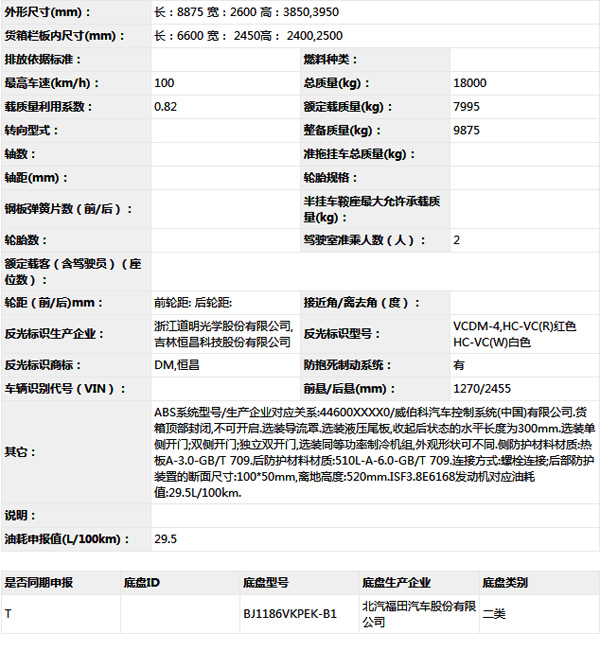 公告型號 BJ5186XLC-B1