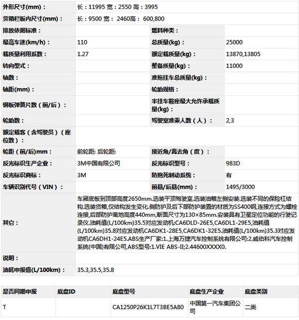 公告型號(hào) CA5250CCYP26K1L7T3E5A80