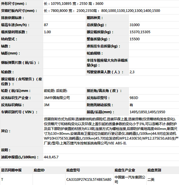 公告型號(hào) CA3310P27K15L5T4E5A80