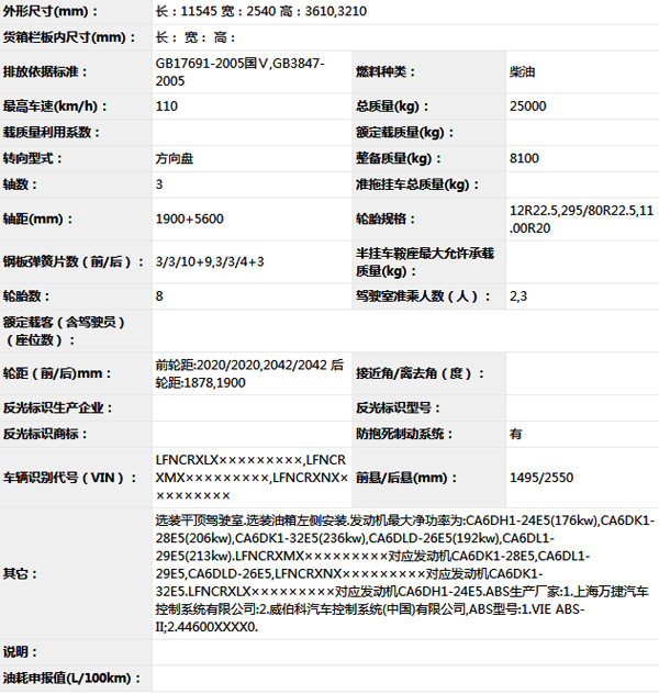 一汽解放牌CA1250P26K1L7T3BE5A80平頭柴油載貨汽車底盤