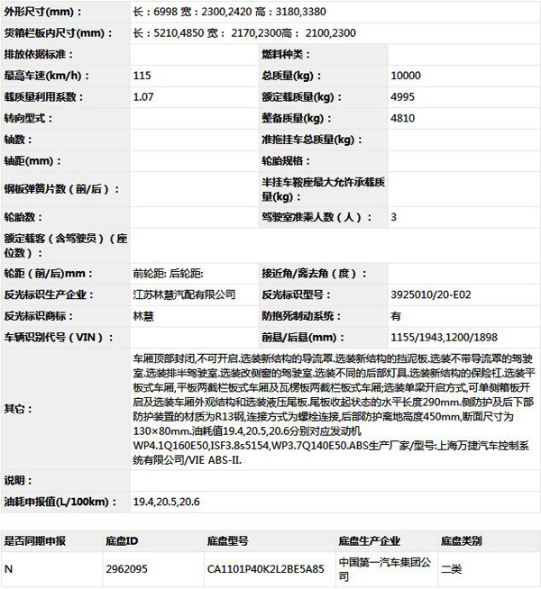 公告型號 CA5101XYKP40K2L2E5A85