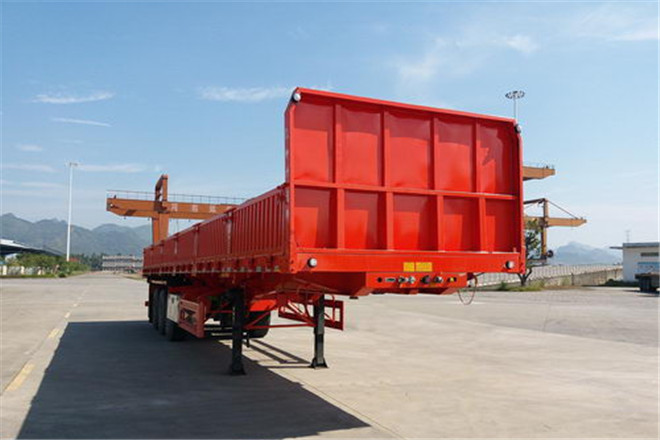 備注 總長(zhǎng)/軸距/后懸/離去角的對(duì)應(yīng)關(guān)系為(mm/mm/mm/°):8000/3830+1310+1310/950/35;8500/3830+1310+1310/1250/24;8500/3830+1310+1310/1100/30;8500/4200+1310+1310/950/35;9000/3830+1310+1310/1250/24;9000/4200+1310+1310/1250/24;9000/4200+1310+1310/1100/30.因油缸行程不同而產(chǎn)生多個(gè)高度;側(cè)面及后下部防護(hù)裝置材質(zhì)均為Q235;側(cè)面防護(hù)裝置連接方式為螺栓連接,后防護(hù)裝置連接方式為焊接;后部防護(hù)裝置的斷面尺寸:140mm×50mm(選裝后部防護(hù)裝置斷面尺寸160mm×60mm);后護(hù)欄離地高度450mm.ABS生產(chǎn)廠家/型號(hào):廣州瑞立科密汽車電子股份有限公司/CM2XL-2S/2M;廣州市西合汽車電子裝備有限公司/XH-GQ4S2M-E01.該平板自卸半掛車為后卸式.