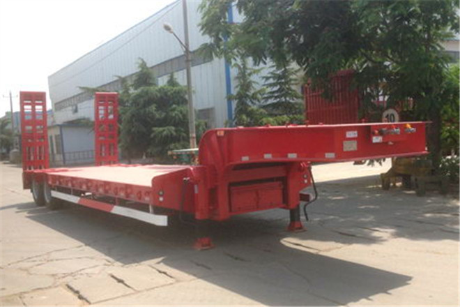 備注 該車僅可運(yùn)輸不可拆解物體,鵝頸部分不允許載貨;鵝頸部分最大寬度為1500mm;輪胎可外露樣可不外露;貨臺(tái)承載面離地高度可為1150mm,1100mm,1000mm,950mm,900mm;車輛的長(zhǎng)度/軸距/后懸(mm)對(duì)應(yīng)關(guān)系為:13000/9600+1300/1100,12530/9370+1300/1330,12530/9200+1300/1500,12230/9150+1300/1330,12230/8980+1300/1500,12000/450/8750+1300/1500;此車選裝前鵝頸樣式,選裝液壓爬梯結(jié)構(gòu),該車還可選裝單簧爬梯,雙簧爬梯及三簧爬梯;選裝輪胎上方外露或不外露;尾部可選裝無(wú)斜坡;車身縱梁之間選裝通體圓弧,部分圓弧,通體垂直下凹及部分垂直下凹;尾部爬梯及支架收起狀態(tài)超出車架的水平長(zhǎng)度不超過(guò)300mm,該長(zhǎng)度不在車輛長(zhǎng)度測(cè)量范圍內(nèi);因選裝引起的質(zhì)量變化均在3%內(nèi);ABS系統(tǒng)廠家為廣州瑞立科密汽車電子股份有限公司,廣州市西合汽車電子裝備有限公司,型號(hào)為CM2XL-4S/2K、XH-GQ4S2M-E01;側(cè)防護(hù)裝置材料采用Q235,連接方式為螺栓連接;后部結(jié)構(gòu)具備后防護(hù)裝置功能,離地高度為410mm.