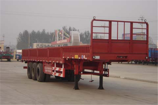 備注 該車為鵝頸式半掛車,選裝側(cè)面欄板樣式;選裝前擋樣式;ABS系統(tǒng)廠家為廣州市西合汽車電子裝備有限公司,型號為XH-GQ4S2M-E01;側(cè)、后部防護(hù)欄材料為Q235,連接方式:側(cè)面為螺栓連接,后部為焊接,后防護(hù)欄主要尺寸:斷面尺寸為140×50 mm,離地高度為540mm。