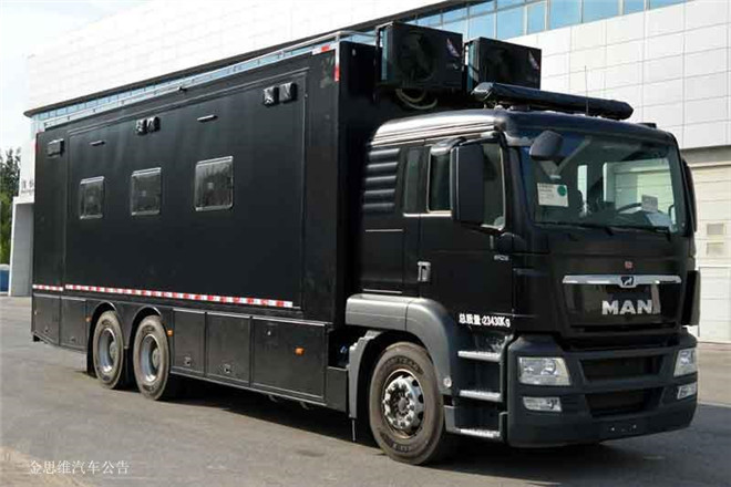 備注 頂部封閉,不可開啟;側(cè)防護(hù)為裙邊結(jié)構(gòu),側(cè)防護(hù)離地高390mm,后防護(hù)離地高度為470mm. 側(cè)防護(hù)及后防護(hù):材質(zhì)Q235,連接方式:螺栓連結(jié),后部長*寬*高為2394mm×60mm×120mm;ABS型號:0 486 106,生產(chǎn)廠:KNORR;發(fā)動機(jī)最大凈功率為353kw.專用裝置:宿營床,空調(diào),發(fā)電機(jī)電視,物品柜等,用于野外宿營。