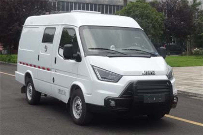 備注 選裝前防撞保險(xiǎn)杠,多種樣式后踏步或后防撞保險(xiǎn)杠,隨底盤(pán)選裝中頂,選裝中門玻璃及結(jié)構(gòu)樣式,選裝后開(kāi)門樣式;基型車為低頂帶后踏步長(zhǎng)4944mm,高2040mm,整備2495kg,載質(zhì)量625kg;選裝不帶后踏步,車長(zhǎng)4744mm,選裝單獨(dú)裝前防撞保險(xiǎn)杠,車長(zhǎng)4884mm;選裝同時(shí)帶前防撞保險(xiǎn)杠和后踏步,車長(zhǎng)5084mm;選裝中頂,高2240mm,整備2580kg,載質(zhì)量540kg;選裝長(zhǎng)車身,整備質(zhì)量2650kg,載質(zhì)量470kg;車長(zhǎng)對(duì)應(yīng)為:5304mm(帶后踏步),5104mm(不帶后踏步),5244mm(單獨(dú)帶前防撞杠),5444mm(同時(shí)帶前防撞杠和后踏步);選裝駕駛室準(zhǔn)乘3+2或2+3,對(duì)應(yīng)載質(zhì)量分別為:690kg,605kg,535kg;選裝車尾頂部攝像頭,低頂車高2080mm,中頂車高2280mm;隨底盤(pán)裝ABS,型號(hào):APG3550500G,ABS系統(tǒng)生產(chǎn)企業(yè):浙江亞太機(jī)電股份有限公司;儲(chǔ)能裝置種類:鋰離子電池,儲(chǔ)能裝置單體生產(chǎn)企業(yè):力神動(dòng)力電池系統(tǒng)有限公司,儲(chǔ)能裝置總成生產(chǎn)企業(yè):武漢力神動(dòng)力電池系統(tǒng)科技有限公司;驅(qū)動(dòng)電機(jī)類型:永磁同步電動(dòng)機(jī),驅(qū)動(dòng)電機(jī)型號(hào):TZ260XSDA4,電機(jī)額定功率60KW,峰值功率為120kw,生產(chǎn)廠家:廈門捷歐大地和新能源有限公司.產(chǎn)品技術(shù)階段:發(fā)展期,可在全國(guó)銷售,主要專用裝置:防彈防暴運(yùn)鈔艙.該車側(cè)面和后部為客廂式裙邊結(jié)構(gòu),側(cè)面離地高370mm,后部離地高480mm,金屬材料采用焊接方式