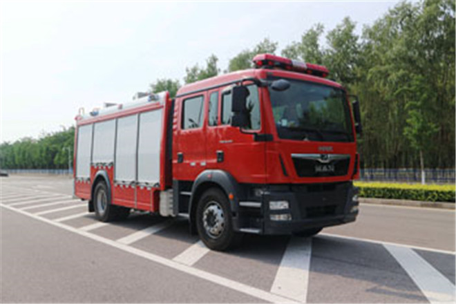 備注 水罐總容積為6.1立方米,水罐尺寸:3150×1400×1450mm。整體式側防護結構,后防護裝置材料:Q235A,截面尺寸(高×寬):120×80mm,與車輛連接方式:螺栓連接,后防護離地高度:425mm,ABS生產(chǎn)企業(yè)為WABCO,型號為480020XXX0。主要專用裝置有消防泵、消防炮。