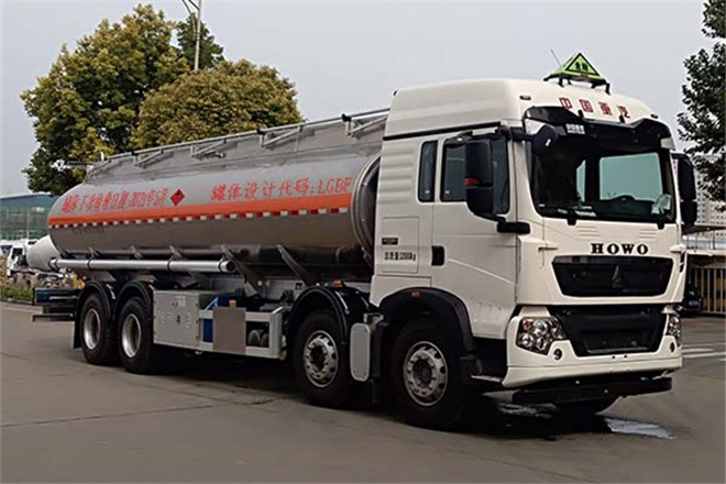 備注 罐體有效容積:27.5立方米;罐體外形尺寸:長×長軸×短軸:8900×2320×1740(mm);危險化學品類項號:3,運輸車輛類型:FL;駕駛室準乘人數為3及2人時對應額定載質量分別為20350kg及20415kg;僅裝底盤中1800+4575+1400軸距;側防護材質:鋁合金,連接方式:螺栓連接;后防護材質:碳鋼,連接方式:螺栓連接,后防護斷面尺寸/離地高:120×60/480mm;隨底盤選裝高頂駕駛室,前保險杠,前部燈具,后風窗;前輪采用盤式制動器;僅選用底盤前置排氣系統(tǒng)及子午線輪胎.安裝限速裝置,限速80km/h;安裝具有衛(wèi)星定位功能的行駛記錄儀;ABS系統(tǒng)型號為4460046300,生產企業(yè)為威伯科汽車控制系統(tǒng)(中國)有限公司.隨底盤選裝EBS,EBS系統(tǒng)型號為4461352410,生產企業(yè)為威伯科汽車控制系統(tǒng)(中國)有限公司.僅裝配MC07.31-50,MC07.34-50,MC07.35-50發(fā)動機對應的油耗值(L/100km)分別為:42.5,42.7,42.8,對應的發(fā)動機凈功率(kW)分別為225,245,251.選裝罐頂矮護欄,槽型管箱,大告示牌,后爬梯位置,號牌板位置,選裝輪胎罩結構型式;選裝罐頂無護欄及側面工具箱結構型式,選裝后部封頭噴涂顏色(如選裝照片).駕駛室天線的軟質部分不在車輛高度測量范圍.該車后軸為采用空氣懸架.該車型可選裝ETC車載裝置.