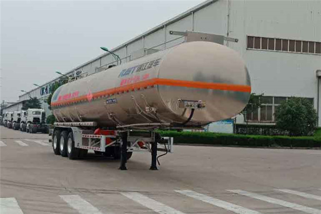 備注 罐體有效容積為49.3立方米.罐體外形尺寸(長(zhǎng)×寬×高)(mm):11700×2540×2140,危險(xiǎn)貨物運(yùn)輸車(chē)輛類(lèi)型:FL,危險(xiǎn)品類(lèi)項(xiàng)號(hào):3.選裝燈支架,選裝前后爬梯,選裝后防護(hù)結(jié)構(gòu),選裝頂部結(jié)構(gòu),選裝多種膠管箱,選裝接線(xiàn)盒位置,選裝側(cè)面工具箱、卸料箱位置,選裝滅火器樣式及位置,選裝擋泥板.ABS生產(chǎn)廠為威伯科汽車(chē)控制系統(tǒng)(中國(guó))有限公司,型號(hào)為4005000810;克諾爾商用車(chē)系統(tǒng)企業(yè)管理(上海)有限公司,型號(hào)為K068353XXX,EBS生產(chǎn)廠為克諾爾商用車(chē)系統(tǒng)企業(yè)管理(上海)有限公司,型號(hào)為K11061XVXX,ABS生產(chǎn)廠為廣州瑞立科密汽車(chē)電子股份有限公司,型號(hào)為CM2XL-4S/2M;浙江萬(wàn)安科技股份有限公司,型號(hào)為VIE-TABSⅡ.側(cè)防護(hù)材質(zhì)為鋁合金,后防護(hù)材質(zhì)為碳鋼,連接方式均為螺栓連接式,后防護(hù)離地高度為480mm,后部防護(hù)裝置的斷面尺寸(mm):150×60.牽引車(chē)采用適用于牽引危險(xiǎn)品運(yùn)輸半掛車(chē)的牽引車(chē).