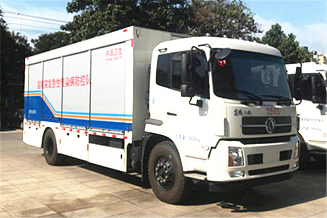 備注 該車用于緊急救護物資的儲備,為緊急移動醫(yī)院配套車輛。選用10.00R20 (16PR)或10.00R20 (18PR)規(guī)格輪胎。專用裝置名稱:液壓尾板,土木工具,醫(yī)用工具,儲備貨架,專用裝置型號:CD-QB30/152,定制,定制,定制。側(cè)面及后下部防護裝置均采用裙邊箱結(jié)構(gòu),左右側(cè)1.5mm厚的鋼板,通過螺栓固定在支架上,裙邊箱通過支架與底盤螺栓連接,左右側(cè)面防護最大離地高度為410mm;后防護均采用1.5mm厚的鋼板,通過焊接固定在由50X50X5等邊角鋼焊接而成的支架上,通過支架采用10.9級M10螺栓和底盤主大梁連接固定,后防護最大離地高度為480mm。最大凈功率為149kw。僅選用發(fā)動機型號:ISD210 50,對應的油耗值為27.3L/100km。液壓尾板,收起狀態(tài)的水平長度400mm。安裝ABS,ABS型號:3631010-C2000,4460046440;生產(chǎn)廠家:東科克諾爾商用車制動系統(tǒng)(十堰)有限公司,威伯科汽車控制系統(tǒng)(中國)有限公司。