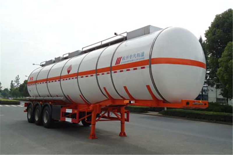 備注 危險貨物運輸車輛的車輛類型為FL.運輸介質(zhì)/密度(千克/立方米):庚烷(正庚烷)/695,己烷/670, 異辛烷/692,正辛烷(辛烷)/700,石油醚/640,類項號為3;罐體有效容積為45立方米,保溫外罐總長為11600mm,最大段:直徑×長(mm):2430×7290,最小段:直徑×長(mm):2230×3110,中間段長為1200mm,保溫層厚度為50mm;該車應(yīng)在側(cè)面和后部安裝車身反光標識.ABS系統(tǒng)生產(chǎn)企業(yè):瀚德汽車產(chǎn)品(蘇州)有限公司,廣州瑞立科密汽車電子股份有限公司,型號:4S/2M,CM2XL-4S/2M;側(cè)面和后下部防護裝置材料為碳鋼Q235,側(cè)面防護連接方式:螺栓連接;后下部防護連接方式:焊接,后防護裝置的斷面尺寸(mm)120×120(高×寬),離地高度(mm)490. 選裝擋泥板樣式,采用適用于牽引危險品運輸半掛車的牽引車.選裝(鋁合金或不銹鋼閥門箱和工具箱,后部溫度表位置).選裝(外蒙皮,鋁合金側(cè)防護(與車架螺栓連接),頂部走臺活動扶手).
