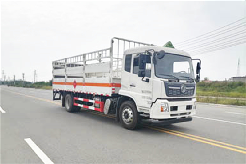 備注 該車為危險品運輸車.隨底盤選裝駕駛室.用于運輸具有獨立容器(瓶)包裝的氣瓶,類項號:2.1,2.2.選掛2.1類易燃?xì)怏w警示牌或2.2類非易燃無毒氣體警示牌,選裝無柵欄樣式.后部安裝液壓尾板,液壓尾板收起水平長度:300mm,尾板質(zhì)量為550kg.側(cè)、后防護(hù)材料為Q235,連接方式:焊接連接,后防護(hù)截面高120mm,截面寬50mm,下邊緣離地高490mm.選裝后部不帶尾板時,后防護(hù)裝置材料:Q235,連接方式為焊接,后防護(hù)截面高120mm,截面寬50mm,下邊緣離地高490mm.僅采用排氣管前置,子午胎,限速裝置,輔助制動裝置和前盤制動器的底盤;限速80km/h.安裝具有衛(wèi)星定位功能的行駛記錄儀.EBS型號/廠家:EBS5/東科克諾爾商用車制動系統(tǒng)(十堰)有限公司.發(fā)動機B6.2NS6B210對應(yīng)的油耗值為25.9L/100km,發(fā)動機DDi50E190-60對應(yīng)的油耗值為23.4L/100km.后軸僅采用空氣懸架.轉(zhuǎn)向軸已安裝防爆胎裝置.選裝ETC車載裝置.發(fā)動機B6.2NS6B210的最大凈功率為151kw,發(fā)動機DDi50E190-60的最大凈功率為143kw