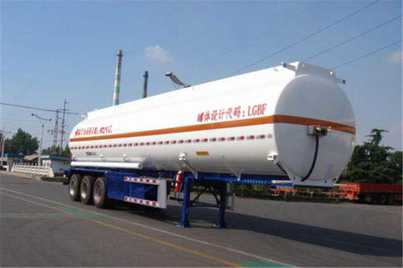 備注 罐體有效容積47.1立方米,罐體總容量49.5立方米,罐體外形尺寸(mm):長12000長軸2530短軸2110.危險貨物運輸車輛的類型為:FL型.準運介質的最大密度為706千克/立方米.該車裝空氣懸架.選裝尾部標志板安裝位置,選裝后部或側面尾部操作箱(或工具箱),選裝側面工具箱樣式,選裝滅火器安裝位置及樣式,選裝側面防護裝置,選裝擋泥板, 選裝爬梯可在罐體前部或后部或前后都裝,選裝后部罐體上的組合燈具,選裝正前、正后爬梯及頂部燈支架新結構,選裝護肩及與之匹配的扶手,選裝集液槽數量、位置及與之匹配的扶手,選裝握手盒結構,選裝分段裝配式大梁和T型梁結構、支腿支架樣式、側防護支架樣式, 選裝后部上橫梁結構、材料及牌照板位置,選裝軟管存放箱、側面結構及穿線管.ABS廠家,型號:威伯科(上海)管理有限公司,4005000880或浙江萬安科技股份有限公司,VIE-TABSⅡ或廣州市西合汽車電子裝備有限公司,XH-GQ4S2M-E01或廣州瑞立科密汽車電子股份有限公司,CM2XL-4S/2K(4S/2M)或翰德汽車產品(蘇州)有限公司、364570001.EBS廠家,型號:克諾爾商用車系統(tǒng)企業(yè)管理(上海)有限公司,K11061XVXX或瀚德汽車產品(蘇州)有限公司,4S2M或威伯科(上海)管理有限公司, 4801020640或浙江萬安科技股份有限公司,VIE TEBS-I或廣州瑞立科密汽車電子股份有限公司,CM-TEBS.側防材料為鋁合金,螺栓連接;后側防材料為鋁合金或Q235,螺栓連接;后防護斷面尺寸80×150mm,后防護材料為Q235,螺栓連接,后防護斷面尺寸65×150mm,離地高495mm.采用適用于牽引危險品運輸半掛車的牽引車.