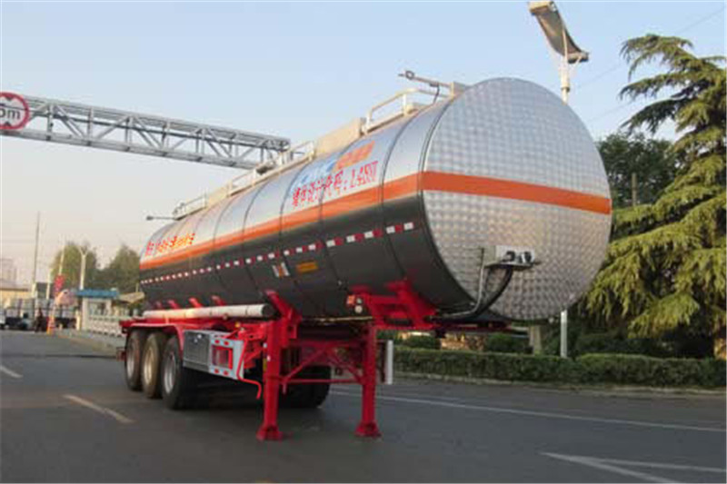 備注 罐體有效容積26.6立方米,罐體總?cè)萘?8立方米.罐體外形尺寸(mm):外罐長10617外徑φ2110,內(nèi)罐長10417外徑φ1908.危險貨物運輸車輛的類型為:AT型.準運介質(zhì)的最大密度為1200千克/立方米.選裝側(cè)防護,選裝擋泥板.選裝罐體前部裝爬梯或后部裝爬梯或前后都裝爬梯.選裝集液槽數(shù)量及位置、罐頂走道、護欄樣式,選裝軟管存放箱、側(cè)面結(jié)構(gòu)及穿線管,選裝握手盒結(jié)構(gòu),選裝分段裝配式大梁和T型梁結(jié)構(gòu)、支腿支架樣式、側(cè)防護支架樣式,選裝后部上橫梁結(jié)構(gòu)、材料及牌照板位置,選裝蒙皮、深淺封頭及燈支架,選裝正前、正后爬梯及頂部燈支架新結(jié)構(gòu).選裝滅火器安裝位置及樣式.選裝側(cè)面尾部操作箱、側(cè)面工具箱樣式,選裝尾部標志板安裝位置.該車裝空氣懸架.ABS廠家,型號:威伯科(上海)管理有限公司,4005000880或廣州瑞立科密汽車電子股份有限公司,CM2XL-4S/2K(4S/2M)或浙江萬安科技股份有限公司,VIE-TABSⅡ或廣州市西合汽車電子裝備有限公司,XH-GQ4S2M-E01或翰德汽車產(chǎn)品(蘇州)有限公司,364570001.EBS廠家、型號:克諾爾商用車系統(tǒng)企業(yè)管理(上海)有限公司,K11061XVXX或瀚德汽車產(chǎn)品(蘇州)有限公司,4S2M或威伯科(上海)管理有限公司,4801020640或浙江萬安科技股份有限公司,VIE TEBS-I.側(cè)防護材料為鋁合金,螺栓連接;后防護材料為Q235或鋁合金,螺栓連接,后防護斷面尺寸80×150mm.后防護材料為Q235,螺栓連接.后防護斷面尺寸65×150mm,離地高495mm.采用適用于牽引危險品運輸半掛車的牽引車.