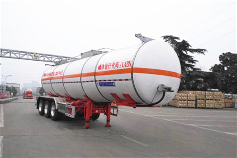 備注 罐體有效容積30.2立方米,罐體總?cè)萘?1.8立方米.罐體外形尺寸(mm):裝100mm保溫層厚度時外罐長10275封頭直徑前φ2160后φ2310.內(nèi)罐長10075封頭直徑前φ1960后φ2110.選裝50mm保溫層厚度時外罐長10275封頭直徑前φ2060后φ2210.危險貨物運輸車輛的類型為:FL型,準運介質(zhì)的最大密度為1055.5千克/立方米.該車裝空氣懸架,選裝前部帶爬梯、后部不帶爬梯,選裝側(cè)面尾部操作箱、側(cè)面工具箱樣式,選裝尾部標志板安裝位置,選裝擋泥板樣式,選裝側(cè)防護工具箱位置,選裝集液槽數(shù)量及位置、罐頂走道、護欄樣式,選裝滅火器安裝位置及樣式,選裝軟管存放箱、側(cè)面結(jié)構(gòu)及穿線管,選裝握手盒結(jié)構(gòu),選裝分段裝配式大梁和T型梁結(jié)構(gòu)、支腿支架樣式、側(cè)防護支架樣式,選裝后部上橫梁結(jié)構(gòu)及材料,選裝蒙皮、深淺封頭及燈支架,選裝正前、正后爬梯及頂部燈支架新結(jié)構(gòu).ABS型號:4005000880,VIE-TABS Ⅱ(4S2M),CM2XL-4S/2M,XH-GQ4S2M-E01,EBS型號:K11061XVXX,4S2M,4801020640,VIE TEBS-I,CM-TEBS;ABS生產(chǎn)企業(yè):威伯科(上海)管理有限公司,浙江萬安科技股份有限公司,廣州瑞立科密汽車電子股份有限公司,廣州市西合汽車電子裝備有限公司,EBS生產(chǎn)企業(yè):克諾爾商用車系統(tǒng)企業(yè)管理(上海)有限公司,瀚德汽車產(chǎn)品(蘇州)有限公司,威伯科(上海)管理有限公司,浙江萬安科技股份有限公司,廣州瑞立科密汽車電子股份有限公司.側(cè)防護材料為鋁合金,螺栓連接;后防護材料為鋁合金或Q235,螺栓連接,后防護斷面尺寸80×150mm,后防護材料為Q235,螺栓連接,后防護斷面尺寸65×150mm,離地高495mm.采用適用于牽引危險品運輸半掛車的牽引車.