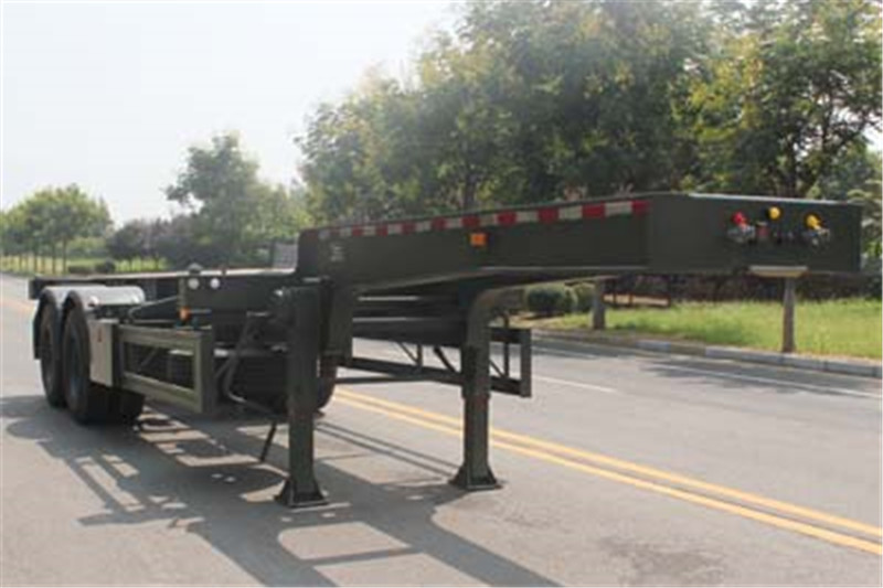 備注 該車型用于運(yùn)輸一只20英尺集裝箱,采用“大鵝頸”結(jié)構(gòu),貨臺(tái)空載承載面高為1320mm;ABS系統(tǒng)生產(chǎn)廠家為廣州市科密汽車制動(dòng)技術(shù)開發(fā)有限公司,ABS型號(hào)為CM2XL-4S/2M;采用集裝箱半掛牽引車;該車型側(cè)面防護(hù)裝置的材料為Q235,連接方式為螺栓連接;后部防護(hù)裝置的材料為Q235,連接方式為焊接,斷面寬度為60mm,斷面高度為160mm,離地高度為420mm。