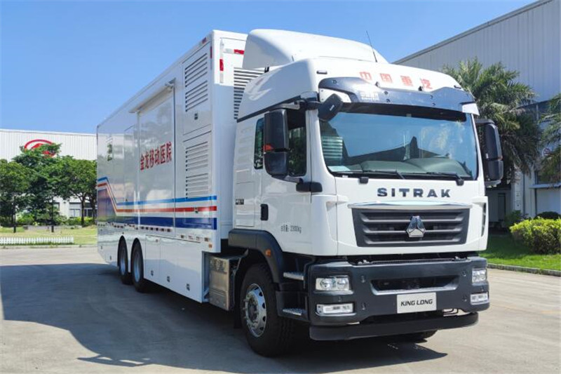 備注 1.車廂頂部封閉不可開啟;2.專用裝置及功能:配有工作臺(tái),該車裝有手術(shù)床、手術(shù)燈、醫(yī)療器械柜、控制柜、醫(yī)用洗手池等,主要用于手術(shù)治療等,選裝CT設(shè)備,主要用于CT檢查,用于醫(yī)療診斷、健康體檢等。3.該車裝有醫(yī)療使用應(yīng)急升降平臺(tái),具有智能平衡調(diào)節(jié)液壓支撐裝置;液壓尾板收起時(shí)的水平長度為285mm,液壓尾板質(zhì)量為450kg;4.側(cè)防護(hù)和后防護(hù)裝置為裙邊結(jié)構(gòu),左、右側(cè)防護(hù)離地高度為350mm,后防護(hù)離地高度為500mm;5.選裝左右拓展艙,僅在駐車時(shí)使用;6.僅選用5775+1400mm軸距底盤,僅選用2/-/-,3/-/-懸架,僅選用MC07.27-60,MC07.31-60,MC07H.33-60,MC07H.35-60,WP7.270E61,WP7.300E61,WP8.350E61,MC07.33-60發(fā)動(dòng)機(jī);7.ABS系統(tǒng)控制器生產(chǎn)企業(yè)/型號(hào)為采埃孚商用車系統(tǒng)(青島)有限公司/4460046300;選裝EBS,EBS系統(tǒng)控制器生產(chǎn)企業(yè)/型號(hào)為采埃孚商用車系統(tǒng)(青島)有限公司/EBS3;8.隨底盤選裝限速裝置,限速89km/h;9.該車型可選裝ETC車載裝置。