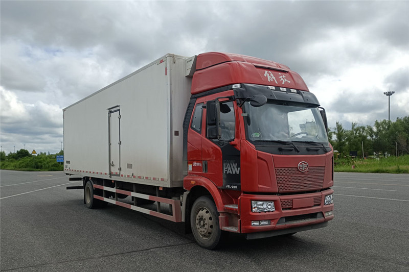 備注 該車選用底盤5800,7100mm軸距.車廂頂部封閉,不可開啟,選裝單側(cè)門,選裝雙側(cè)門,選裝對(duì)開門.可選裝功率相當(dāng)?shù)钠渌评錂C(jī)組,內(nèi)置制冷機(jī)組,安裝符合QC/T449-2010規(guī)定的行駛溫度記錄儀.側(cè)面防護(hù)裝置的橫桿及縱梁材料為Q235,螺栓連接,后下部防護(hù)裝置的橫梁及縱梁材料為700L,螺栓連接,斷面尺寸120×90mm,離地高度為450mm,ABS防抱死制動(dòng)系統(tǒng)生產(chǎn)廠家,長春瑞立科密汽車電子有限公司,型號(hào):CM4XL,油耗申報(bào)值與發(fā)動(dòng)機(jī)對(duì)應(yīng)關(guān)系:25.5(CA4DK2-22E65,CA4DK2-24E65,CA6DH1-26E65,CA6DK2-26E65,CA6DK2A26E65,CA6DK2A28E65,CA6DK2-31E65,CA6DK2-32E65).長度尺寸對(duì)應(yīng)關(guān)系:9860=1400+5800+2660(7500mm廂長),11960=1400+7100+3460(9600mm廂長),9960=1400+5800+2760(7600廂長),10060=1400+5800+2860(7700mm廂長),10360=1400+5800+3160(8000mm廂長),9880=1420+5800+2660(7500mm廂長),11980=1420+7100+3460(9600mm廂長),9980=1420+5800+2760(7600廂長),10080=1420+5800+2860(7700mm廂長),10380=1420+5800+3160(8000mm廂長).駕駕駛室準(zhǔn)乘人數(shù)3人對(duì)應(yīng)額定載質(zhì)量9305kg,9690kg,9925kg,10075kg,駕駛室準(zhǔn)乘人數(shù)2人對(duì)應(yīng)額定載質(zhì)量9370kg,9755kg,9990kg,10140kg.安裝具有衛(wèi)星定位功能的行駛記錄儀.該車型可選裝ETC車載裝置.隨底盤選裝限速裝置,限速89km/h.隨底盤選裝盤式制動(dòng)器.隨底盤選裝高頂駕駛室、選裝平頂駕駛室、選裝導(dǎo)流罩、選裝前圍和燈具、選裝前部無一汽解放標(biāo)識(shí)、選裝翼子板、選裝無門下裝飾板、選裝油箱容積和位置、選裝電瓶框.