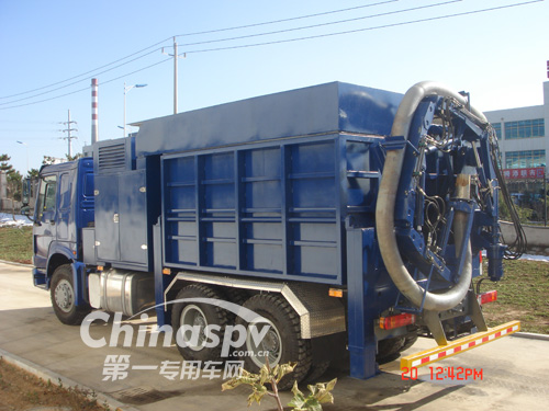 YH5250TLQ型工程垃圾清理車是在重汽ZZ1257N4748W二類底盤的基礎(chǔ)上改裝而成,主要由底盤、料箱總成、真空負(fù)壓輸送系統(tǒng)、空氣過濾系統(tǒng)、液壓系統(tǒng)、控制系統(tǒng)及隨車吊組成。該車是一種對(duì)市政工程、建筑工程、鐵路工程等工程垃圾的現(xiàn)場清理,以及工程中大顆粒狀物料輸送的專用設(shè)備,特別適合城市管網(wǎng)開挖施工、下水管道清理及高層建筑工程垃圾清理等工作。