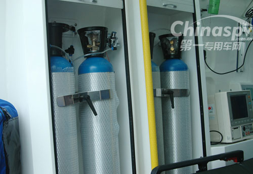 供氧系統(tǒng):10升氧氣瓶4只,大容量適合遠途轉(zhuǎn)運病人需要,隱藏式管道