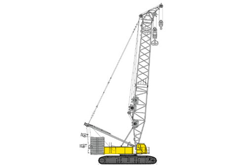 5.強大的起重能力:主臂最大起重量360t/5.5m;最大起重力矩2192t•m;超起工況最大起重力矩可達4500t•m;主臂最長可達90m;變幅副臂最長組合為84m+72m(帶超起);固定副臂最長組合:84m+21m;